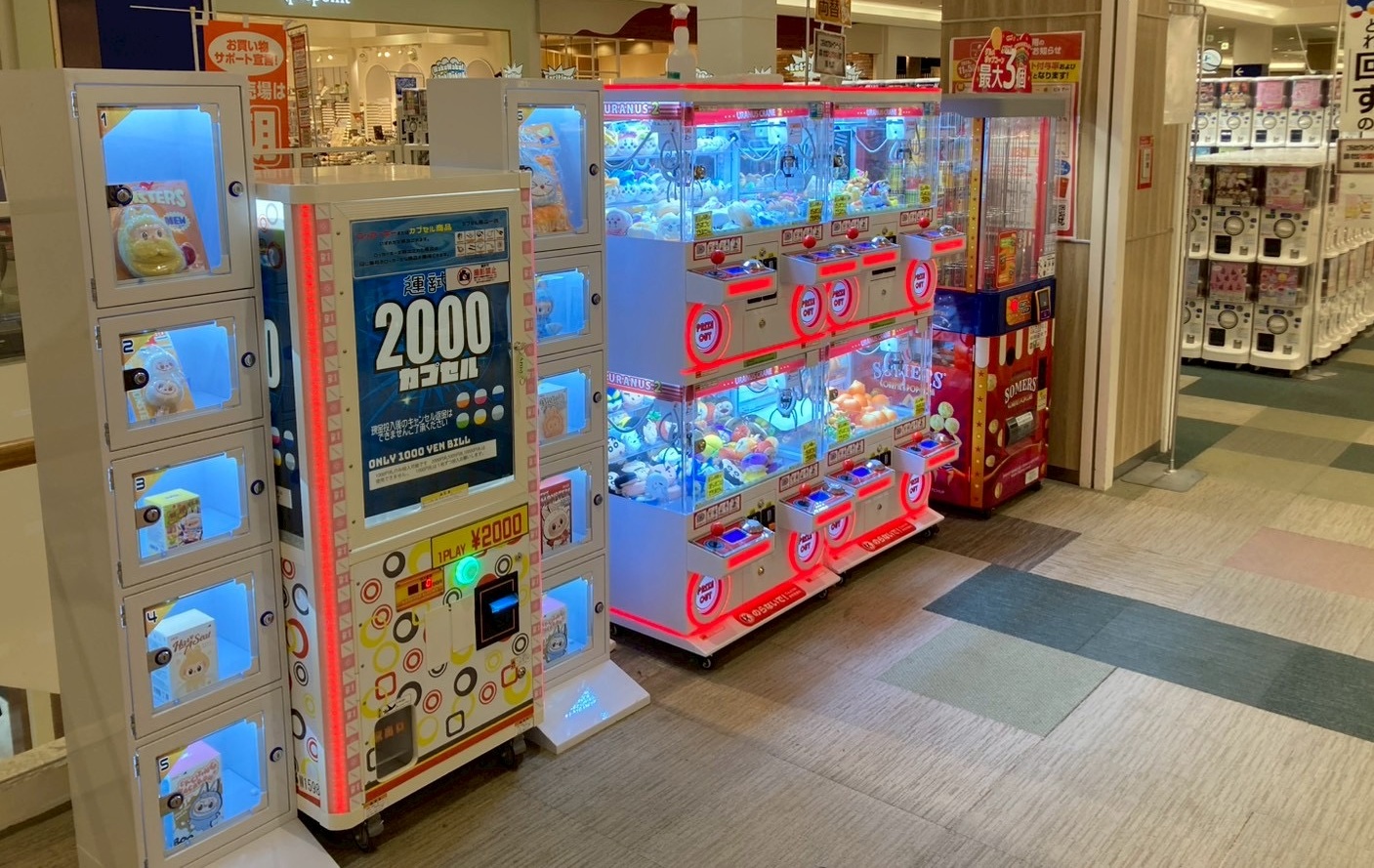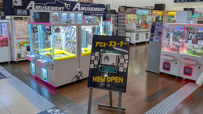 10坪~20坪のアミューズコーナーを 設置 展開作成致します。 限られた空間でも、死角を作らず回遊性を高める什器レイアウト直営店の成功ノウハウを凝縮。高密度・高収益のアミューズメントコーナーをトータルプロデュース致します。 什器の設置から景品展開まで一括対応。